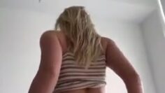 This video shows her wearing a short skirt on stage. Then oops, she has a nice upskirt moment 😉